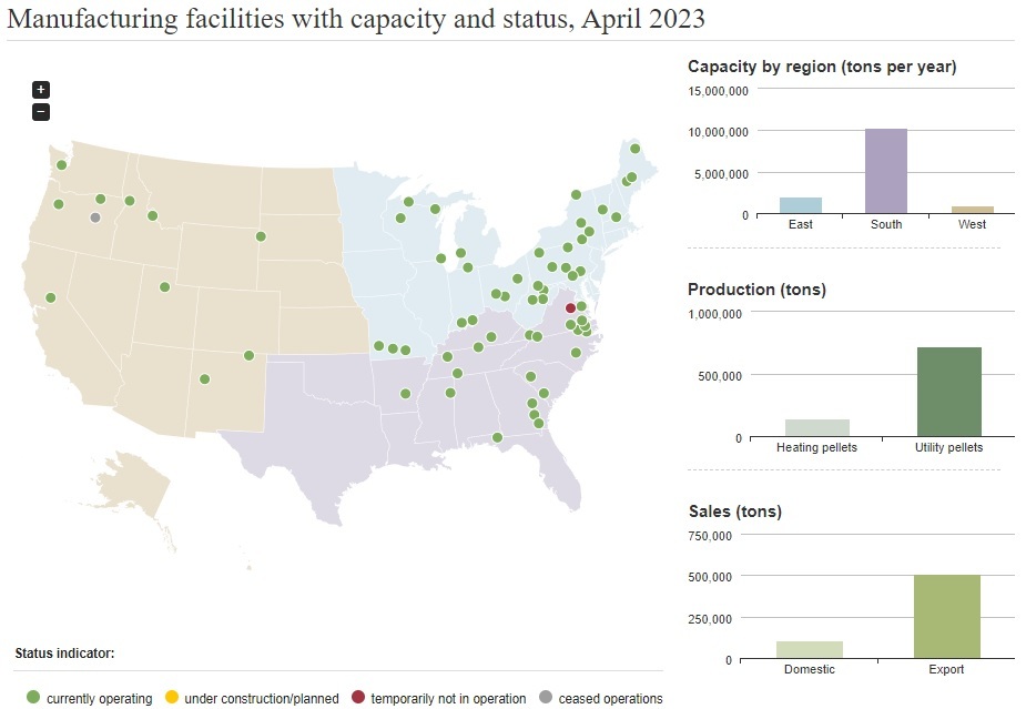 The U.S. Energy Information Administration recently released data showing U.S. manufacturers produced approximately 860,000 tons of densified biomass fuel in April, with sales reaching 610,000 tons.