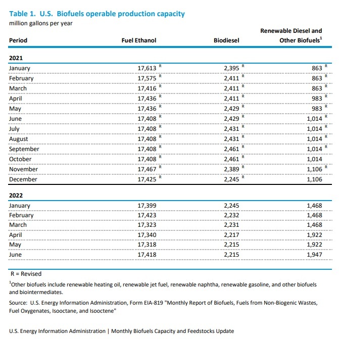U.S. operable biofuel production capacity expanded to 21.58 billion gallons per year in June, up 125 MMgy when compared to May, according to data released by the U.S. Energy Information Administration on Aug. 31. Feedstock consumption was also up.