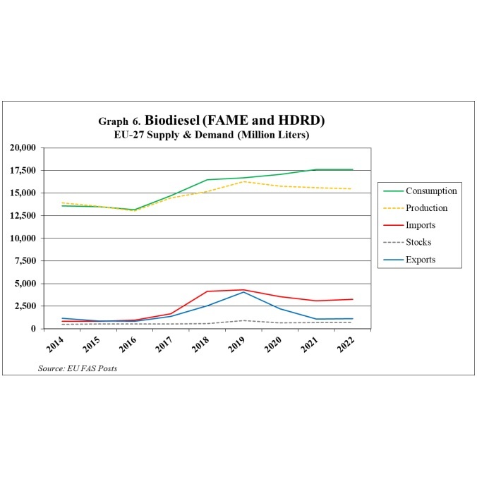 Demand for biodiesel and renewable diesel in the European Union was up in 2020 and 2021 despite the COVID-19 pandemic. That growth, however, is expected to stagnate in 2022, according to a report filed with the USDA.
